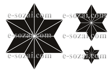 星形正六角形のパターン。形が大麻の葉に似ているため麻の葉文様と呼ばれました。江戸時代になると能衣装などに使われ、文化年間に江戸、森田座で岩井半四郎が演じた八百屋お七で鹿の子絞りの麻の葉の舞台衣装が好評を博して以来、雷文とともに流行現象となりました。